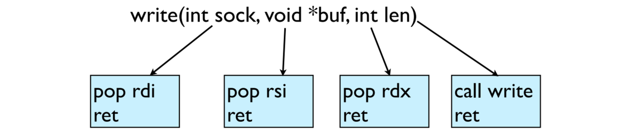 如何找到BROP gadget?通过尝试,返回地址填入后再填入6个crash gadget,以及一个hang/crash gadget,如果最后出现的结果取决于最后一个gadget,那么就可以判定前6个已经被pop吸收了,就意味着找到了,然后就可以通过偏移量计算获取能够将栈中存的参数传给rsi rdi的返回地址