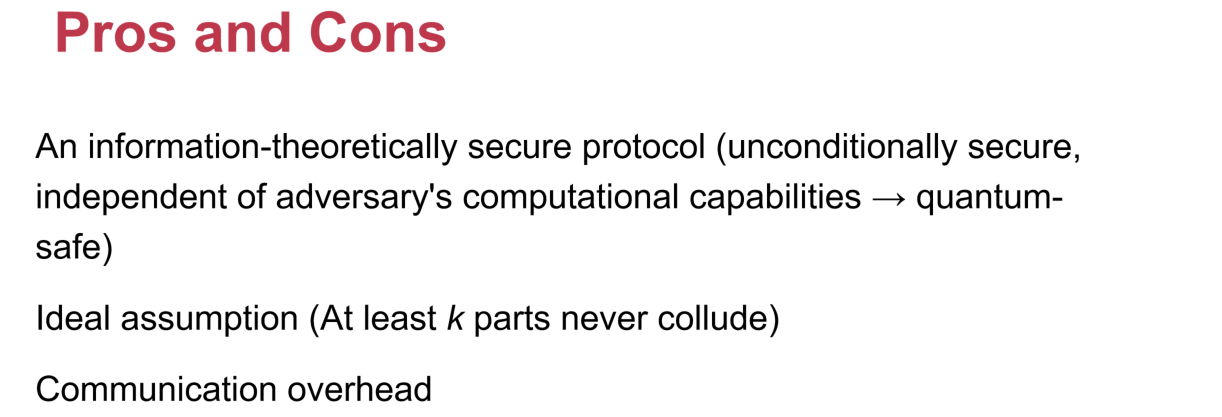 给每个part分别分配一部分的密钥,使得当剩余0.6的part还存活的时候仍能从剩余的part中获取密钥;原本只打算给每个人分配精准的$\frac{1}{n}$的密钥,但是这会带来“一旦有一个人缺席,那么这个密钥就无法被拼凑出”的问题