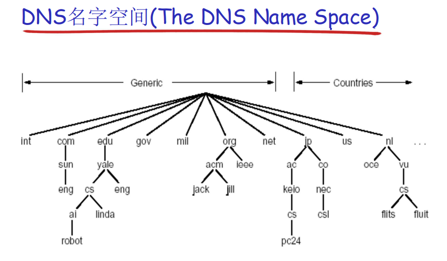 DNS域名结构有许多“顶级域”,比如通用顶级域.com .edu ,或者国家顶级域.cn .us等,每个域下面可以划分为若干子域