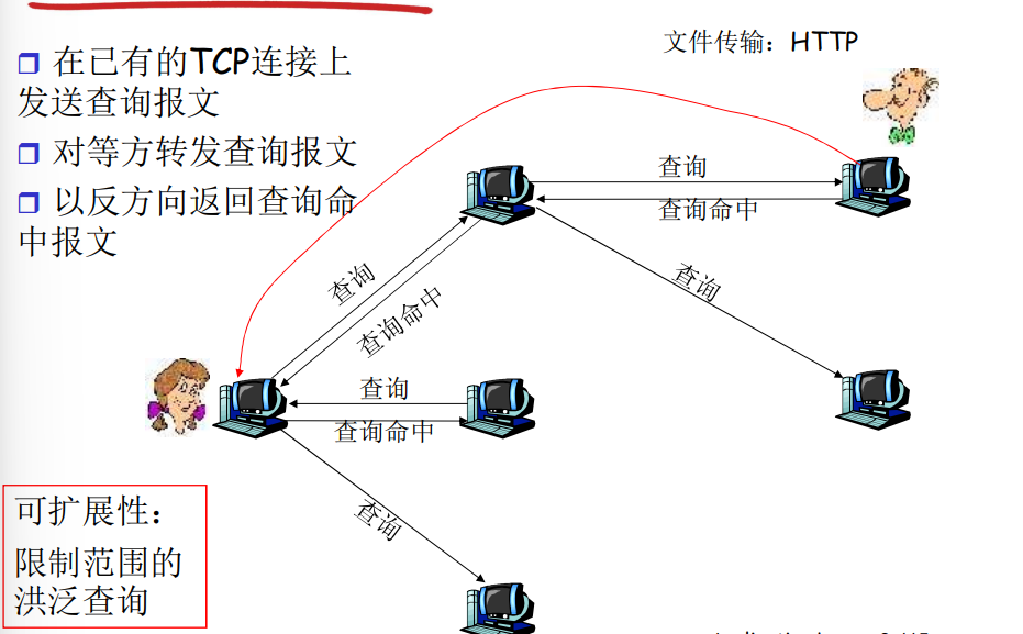 - Gnutella:全分布式架构无中央服务器,通过图数据结构构建网络关系,获取资源的方式是先向邻居节点查询,如无结果则由邻居节点出发继续向外传播查找请求,最后一层层将获取到的资源所在对象转发到源节点