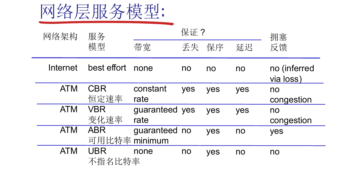 - 数据报流:保证顺序、保证流的最小带宽、分组之间的延迟差(延迟的差,为0表示和发送节奏一致)