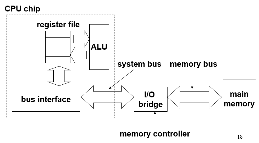 总线(bus) 是携带地址、数据、控制信号的并行管道的集合,通常总线被许多设备共用;读事务从主存传送数据到CPU,写事务从CPU传送数据到主存