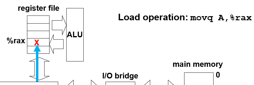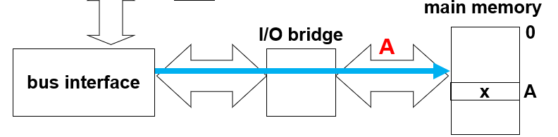 如果是movq %rax, A,则是先总线接口去找主存对应地址,然后将寄存器内容写入总线接口,然后数据从总线接口到主存对应位置