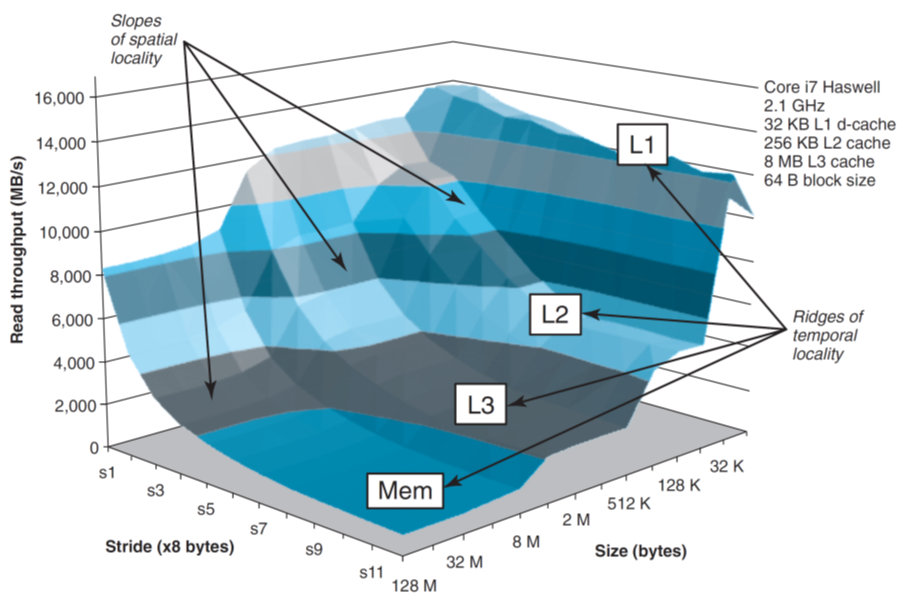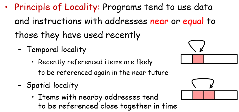 时间局部性:同一空间短时多次被引用;空间局部性:相邻空间短时被频繁引用;对于遍历数组,时间局部性低,因为同一个位置不会被多次引用;但是空间局部性高,因为每次步长为1