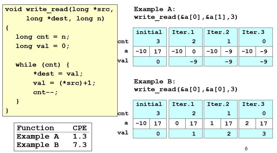 课本的例子中提到了关于函数调用和访问内存两种情况的性能损耗,不过如果函数调用中本身就含有访问内存的操作,那么这里主要的时间损耗其实还是内存访问