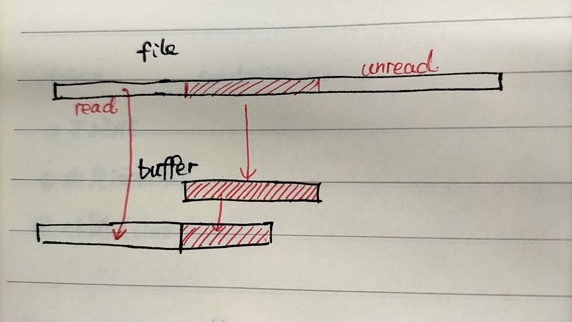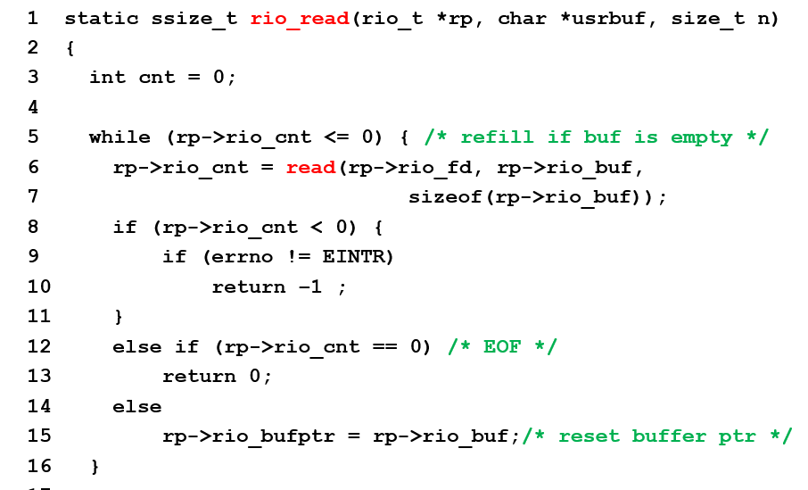 鲁棒IO主要是为了实现IO读取的高效性和鲁棒性,高效性主要是通过缓存buffer来实现的,buffer会读取文件里面的一段内容,然后根据实际的读取需要来进行读取,如下图