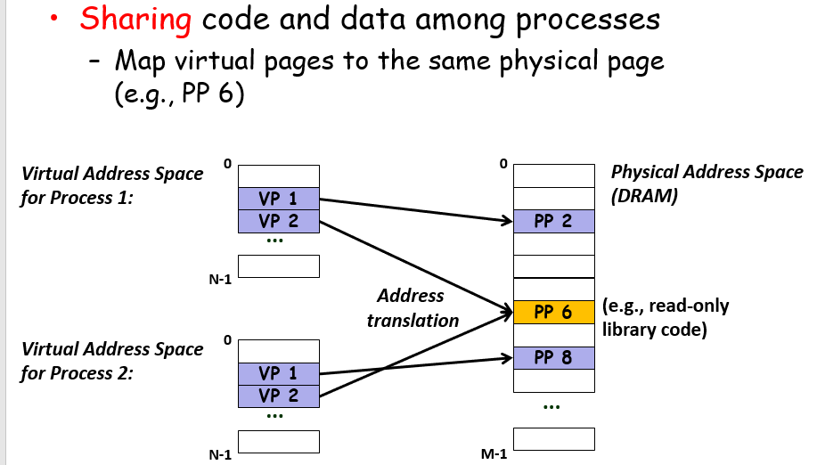 对每个虚拟内存到主存的映射并无限制,允许共享内容