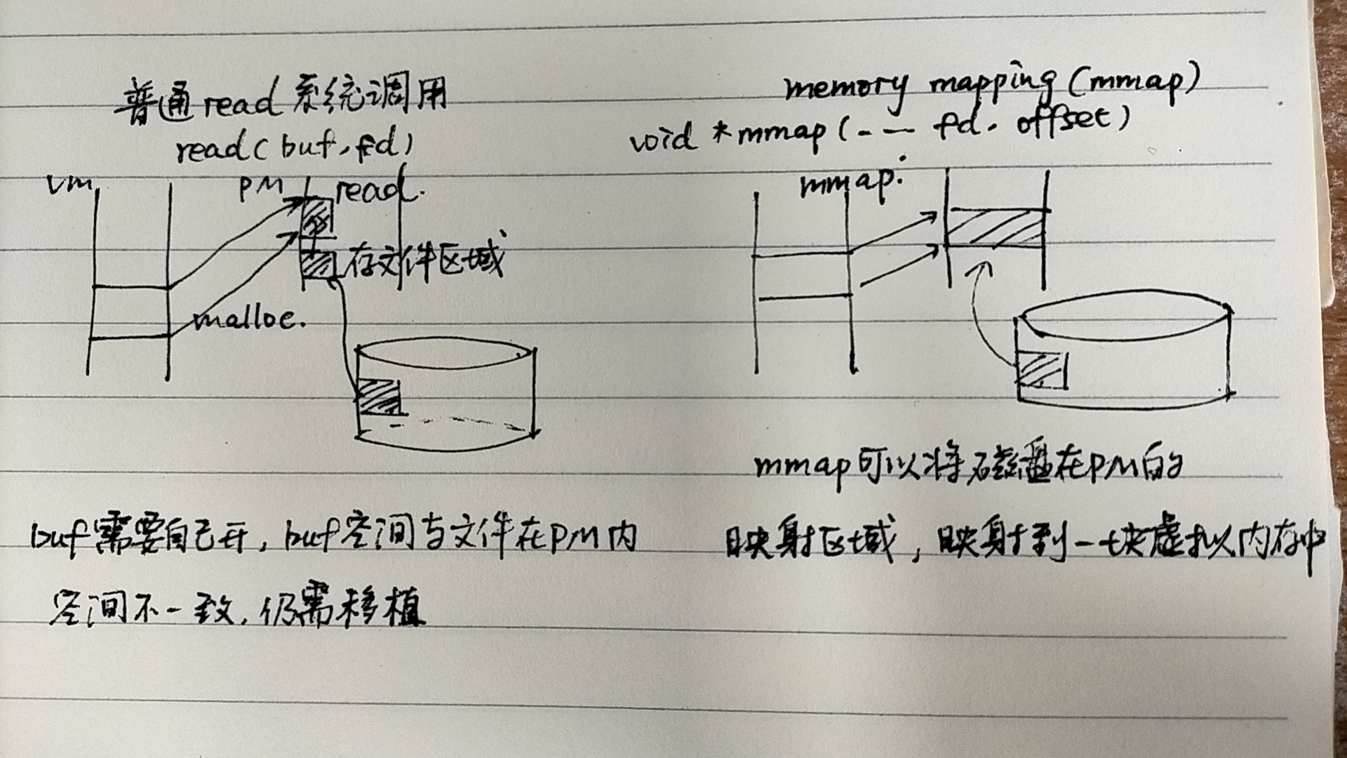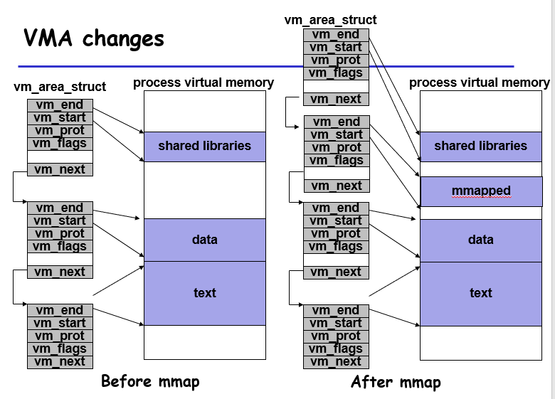 如果开了一个子进程,子进程也会有虚拟内存,子进程会先清除掉继承自父进程的vm_area_struct和page table,然后自己新建,指向新的虚拟地址空间;这里涉及到一个shared libs的东西,他存放了共享的库文件,但是对于每个进程来说,其是私有的,因为这些库文件里面也有可修改的数据字段,比如errno,在errno.h文件中,用于标记库函数调用失败的错误代号(补充,errno是线程安全的)